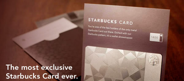 For $450, these little babies come pre-loaded with $400 in credit and automatic Gold membership status. Which means, after you give them $50 for the card, you only have to buy twelve more cups of coffee to get a free one instead of the normal 42.